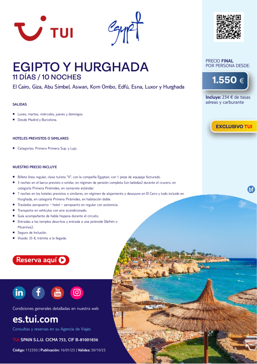 Egipto y Hurghada. 11 días / 10 noches. Exclusivo TUI. Salidas desde MAD y BCN desde 1.550 €